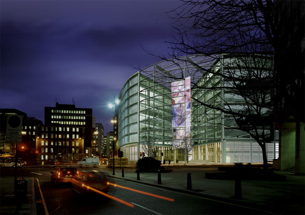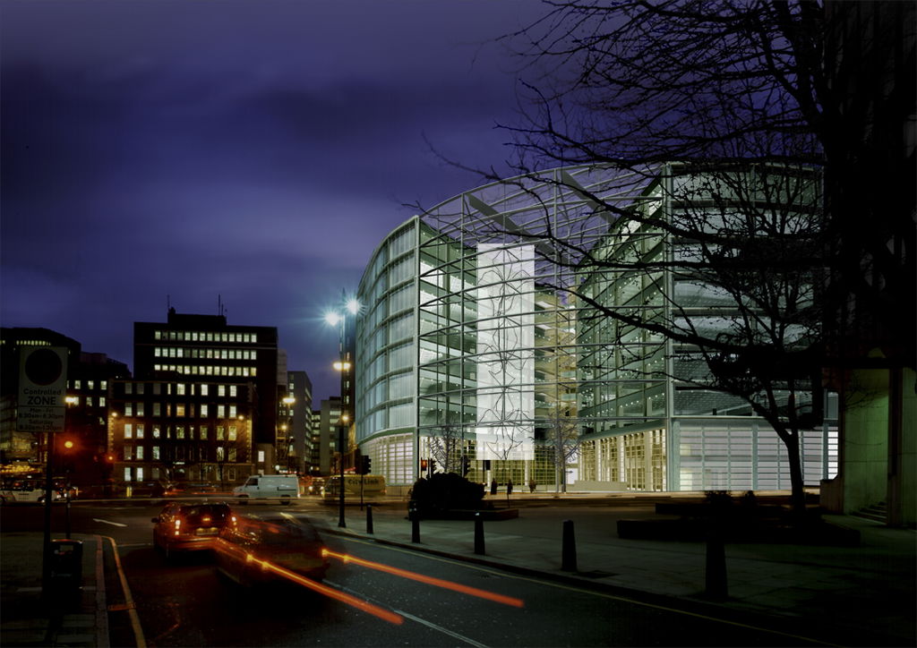 Built to serve as the headquarters of J Sainsbury’s plc, the building contains office floors that overlook a full-height glazed atrium. This opens onto Holborn Circus through a curved glass façade, allowing views deep into the core of the building. The atrium also includes a six-storey glass staircase suspended from slender steel rods, one of the largest glass staircases ever constructed.