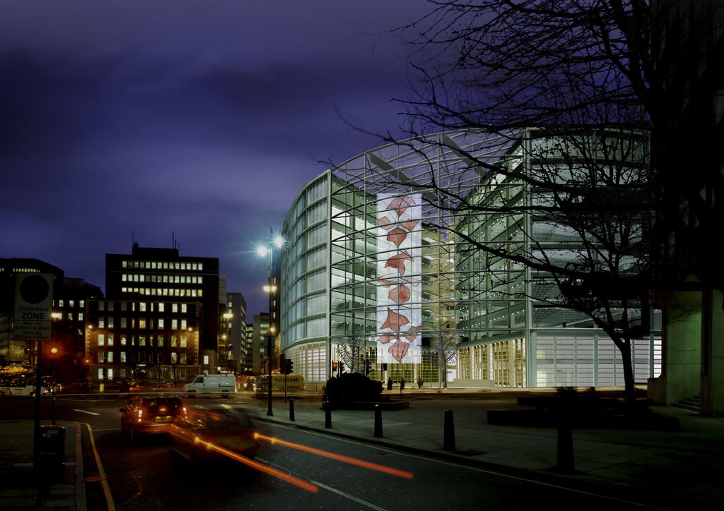 In 2000, Brian Clarke created a series of designs for a stained glass installation at Holborn Place, an eight-storey steel and glass building designed by Foster + Partners at 33 Holborn, London.