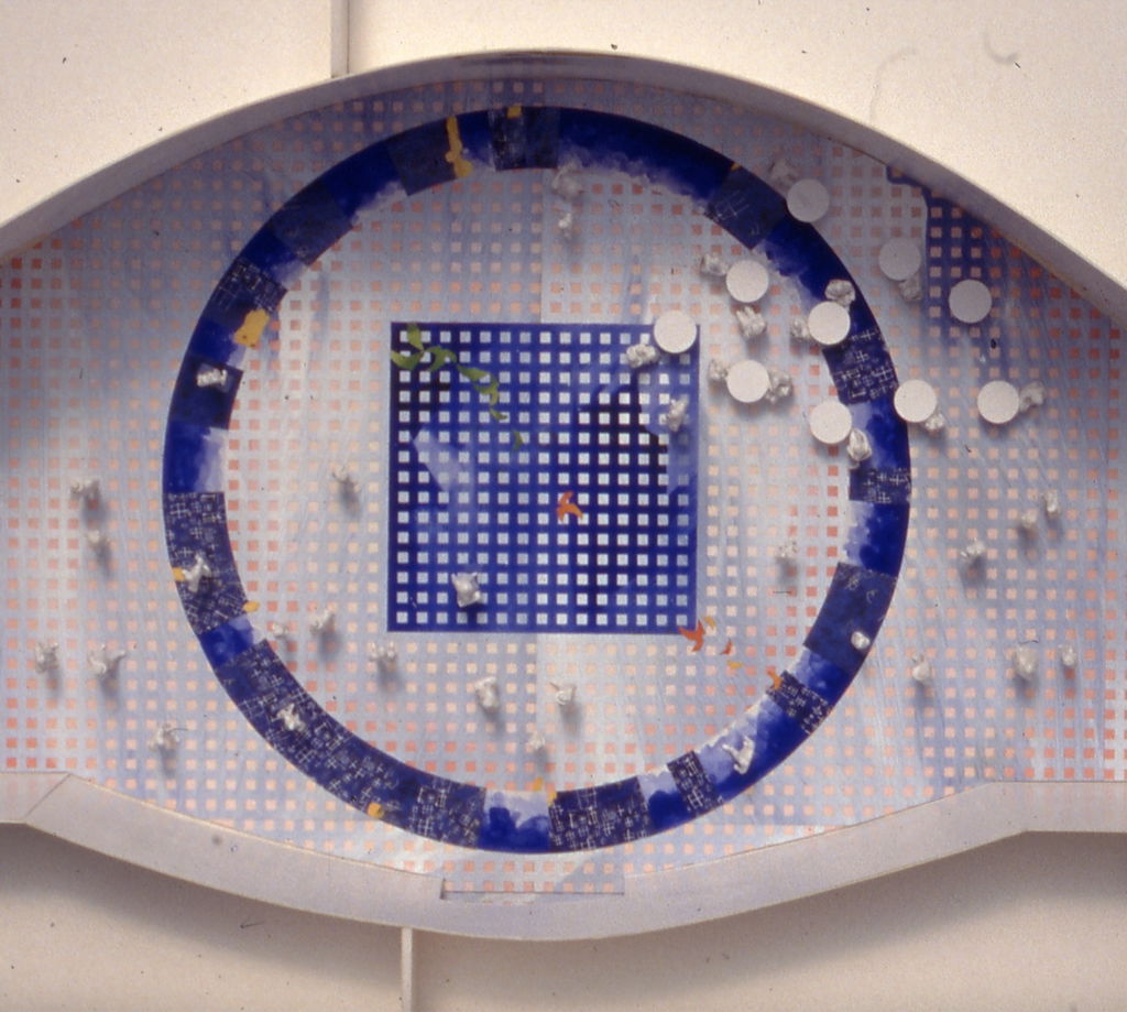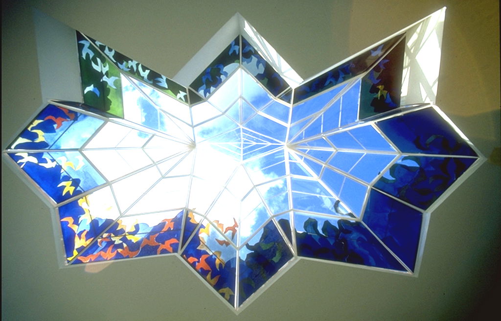 In 1994, Brian Clarke developed a design proposal for the interiors of the two-storey centrepiece building within the then under-construction Quartier 206 complex. Quartier 206, together with Quartiers 205 and 207, forms the Friedrichstadt Passagen, an interconnected three-block development commissioned by Jagdfeld Friedrichstadt Passagen and aimed at revitalising Friedrichstraße, Berlin’s historic main shopping street.